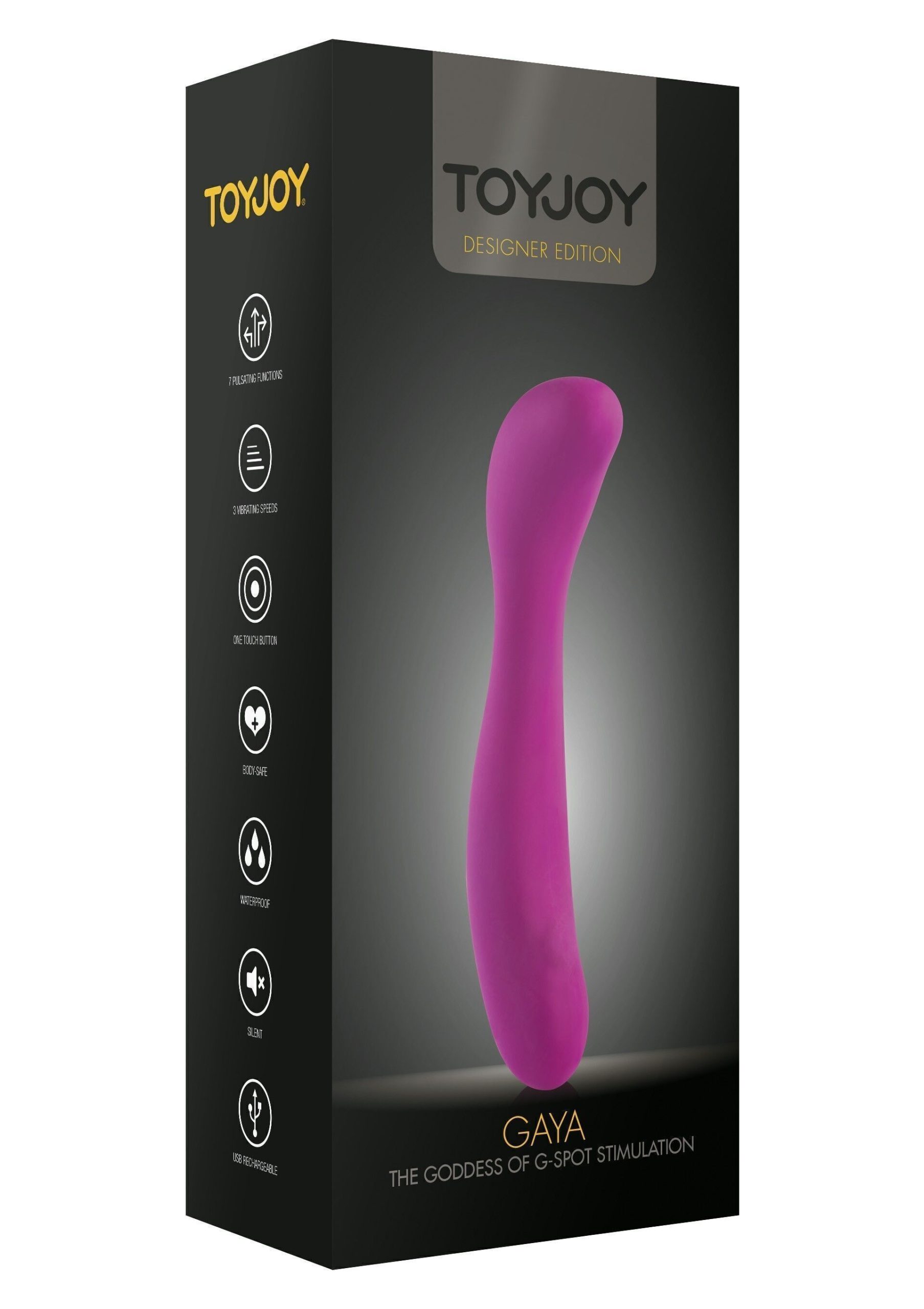 Il Gaya è un vibratore del punto G celeste con una silhouette elettrizzante. Il Gaya è curvo alla perfezione e ha il design definitivo per colpire tutti i suoi punti dolci con precisione divina. Il vibratore del punto G ha una testa a bulbo ed è realizzato in silicone di alta qualità.Dispone di 7 sensazionali funzioni di vibrazione e 3 elettrizzanti velocità di vibrazione. È impermeabile, sicuro per il corpo e ricaricabile tramite USB (cavo di ricarica incluso).