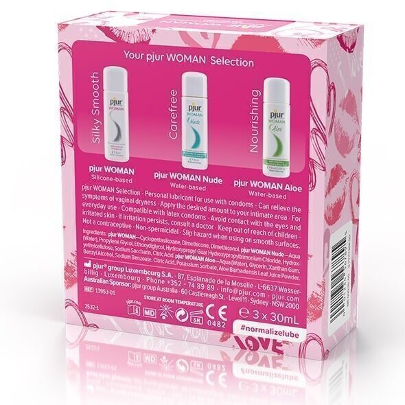 Una selezione dei tre lubrificanti premium Pjur WOMAN più amati in una bella scatola e contiene: